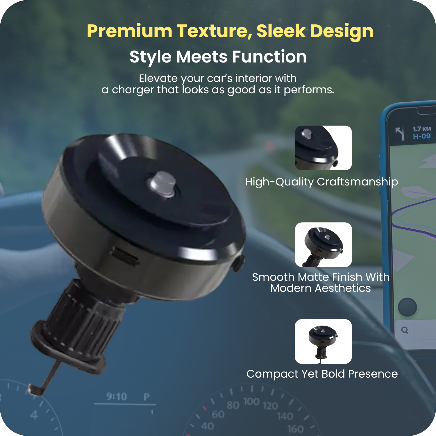 Elevate your car’s interior with a charger that looks as good as it performs.