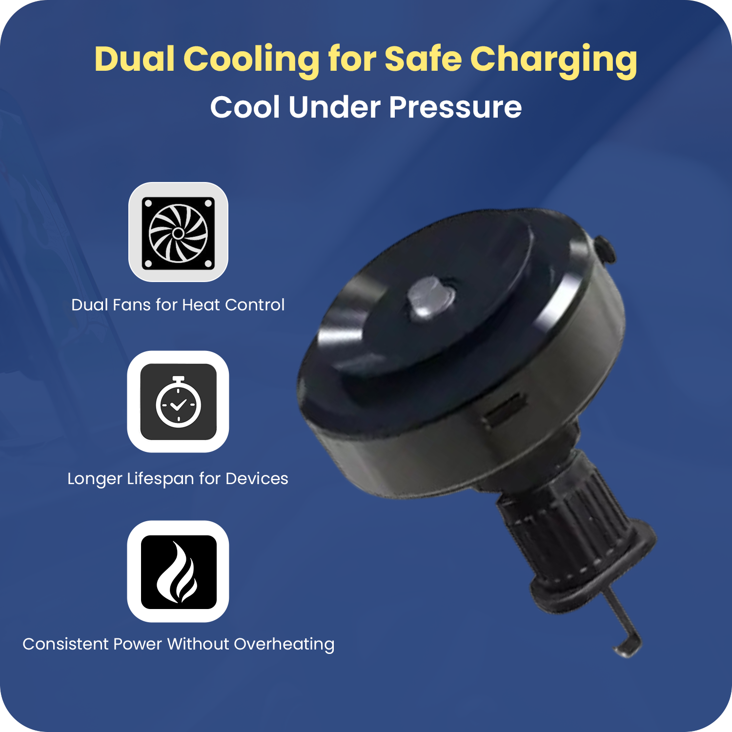 Advanced twin cooling vents prevent overheating while maintaining charging efficiency—even on hot days.