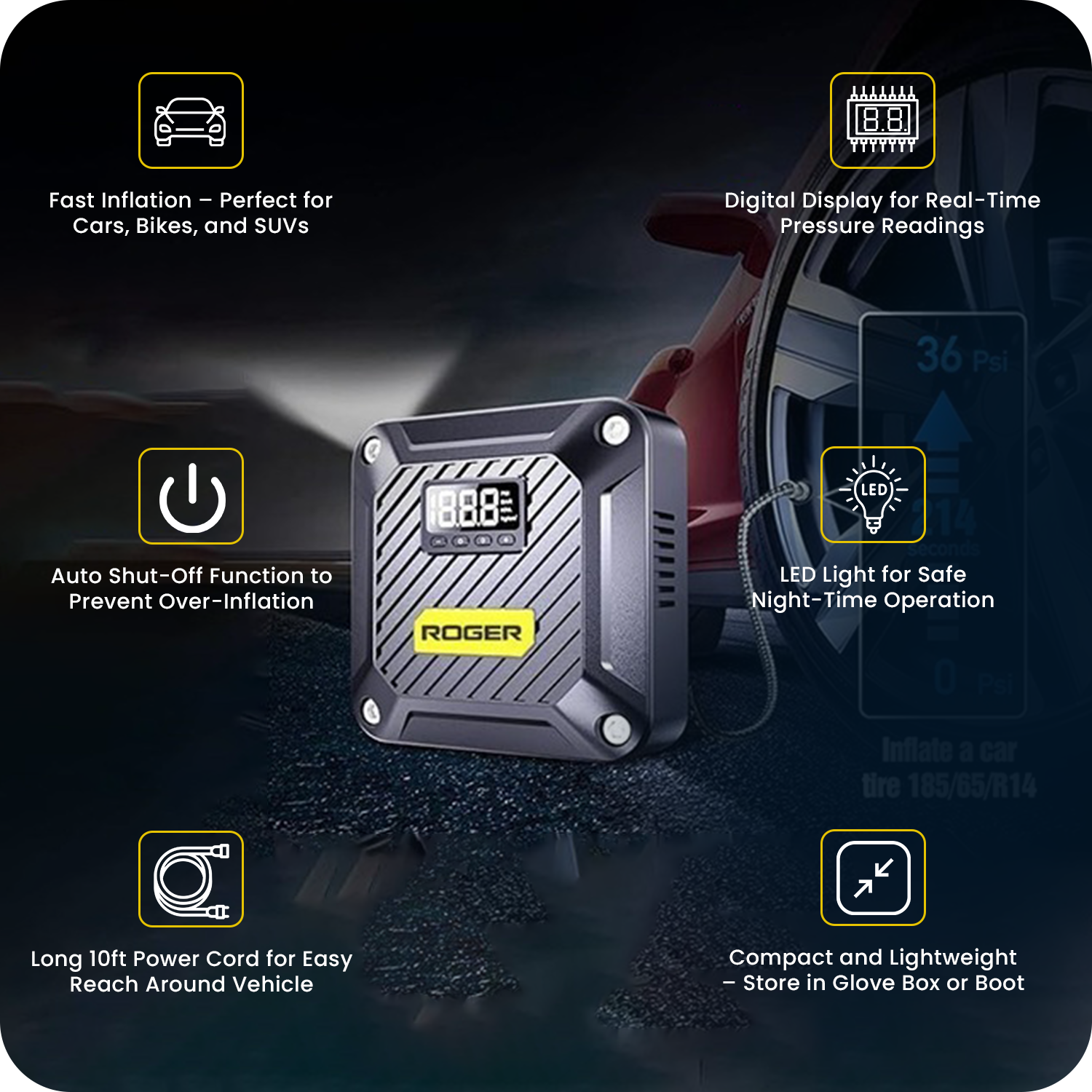 ROGER Air Compressor Pump – Powerful Tire Inflator with Digital Gauge