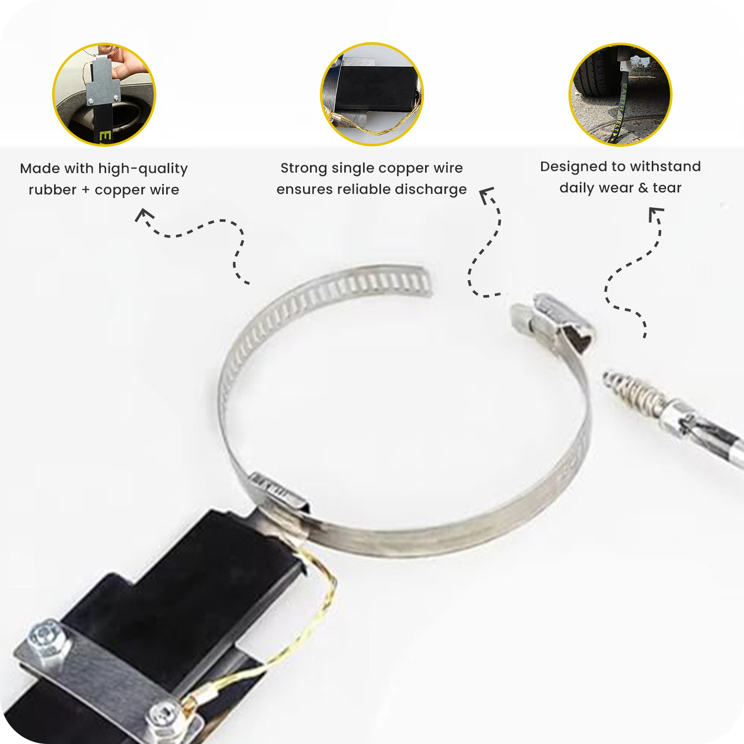 By discharging static electricity from the car’s chassis, the ROGER grounding strap minimizes shocks and enhances overall driving comfort and safety.