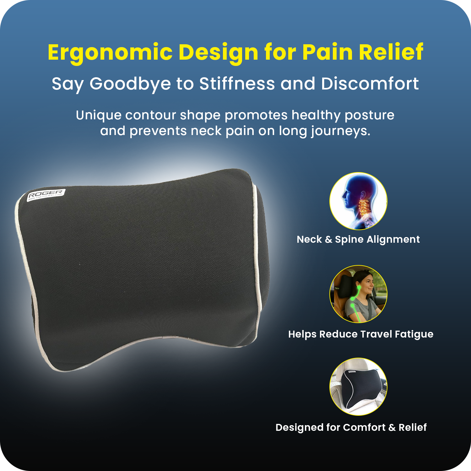 ROGER Car Headrest Pillow (Responsive Memory Foam)