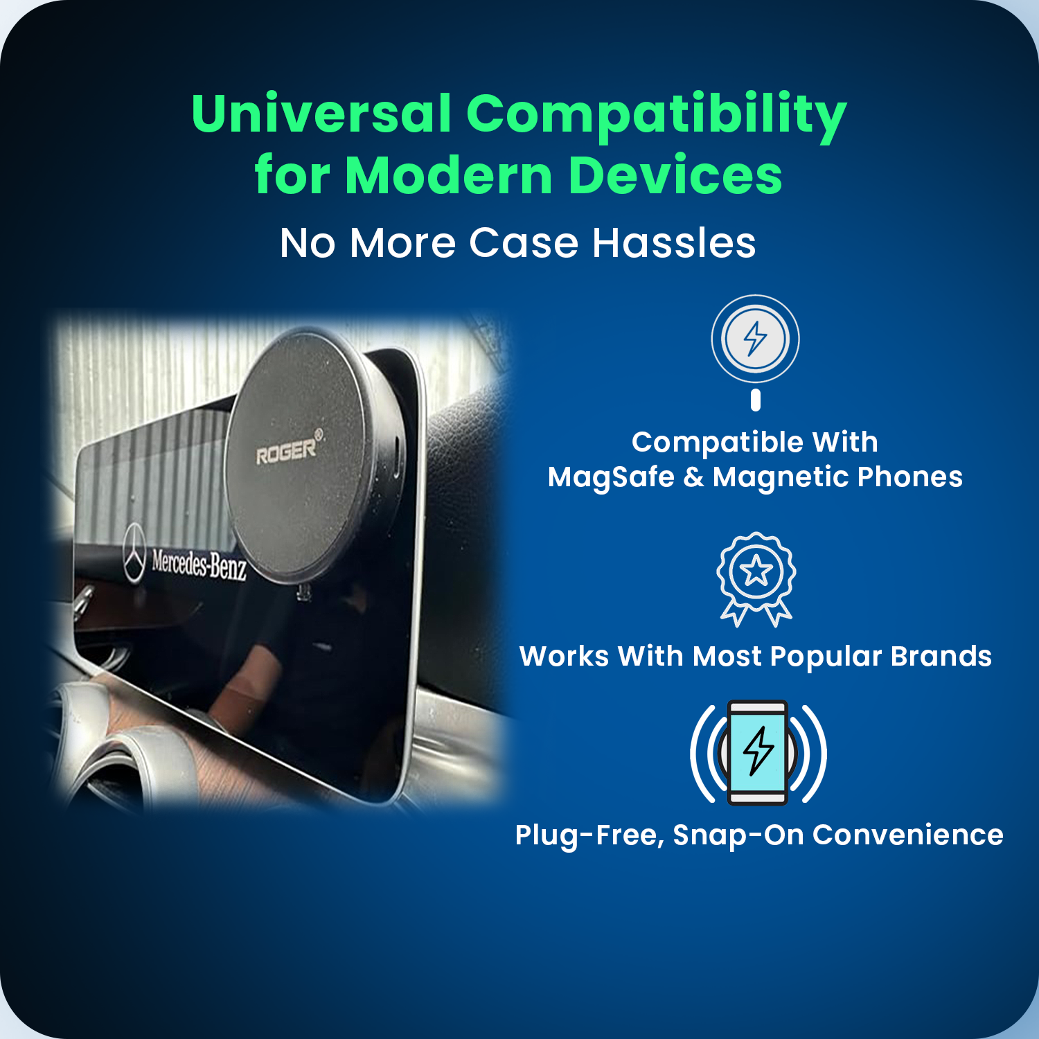 Works seamlessly with all phones that support magnetic wireless charging and MagSafe-style cases— no need to remove your phone cover.