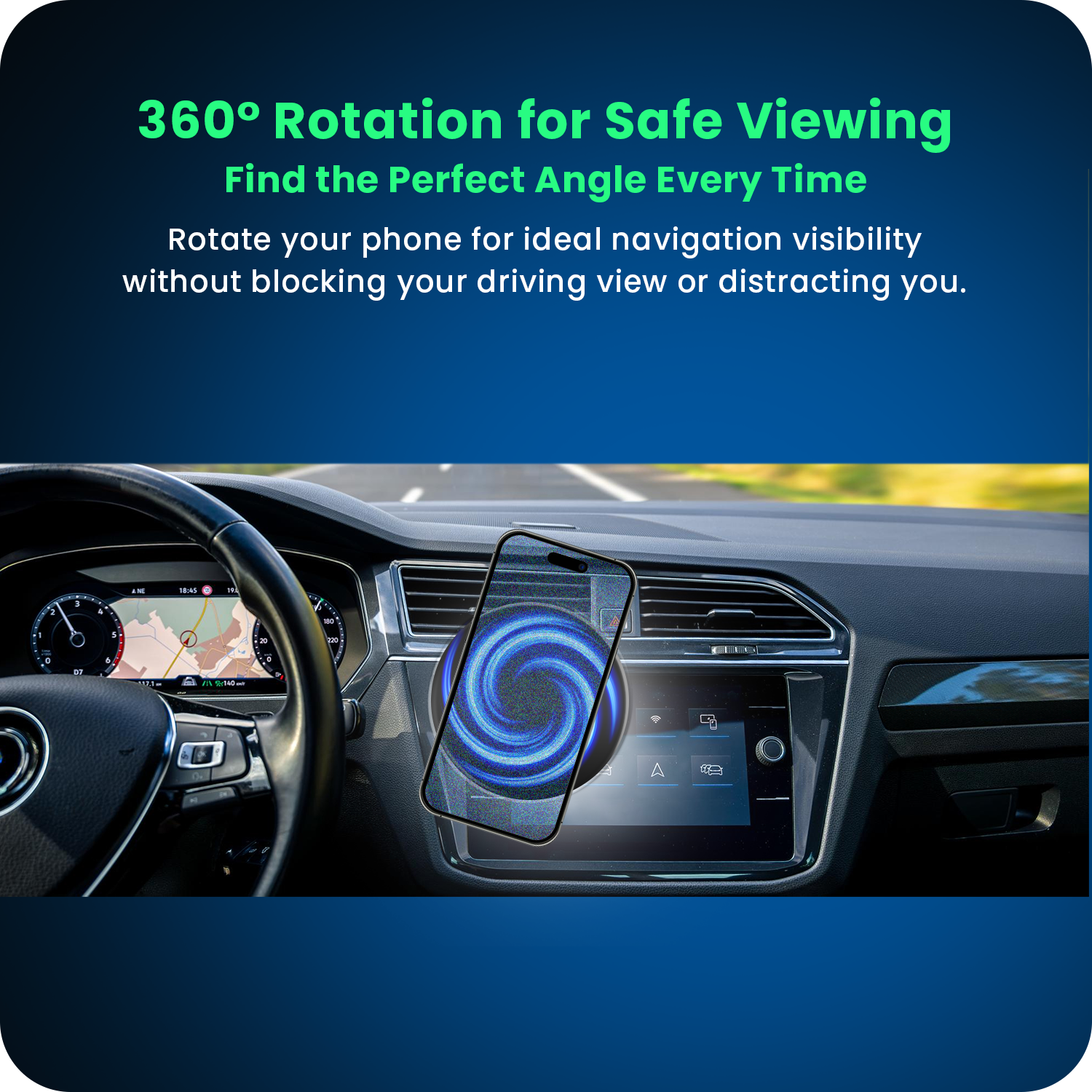 Rotate your phone for ideal navigation visibility without blocking your driving view or distracting you.