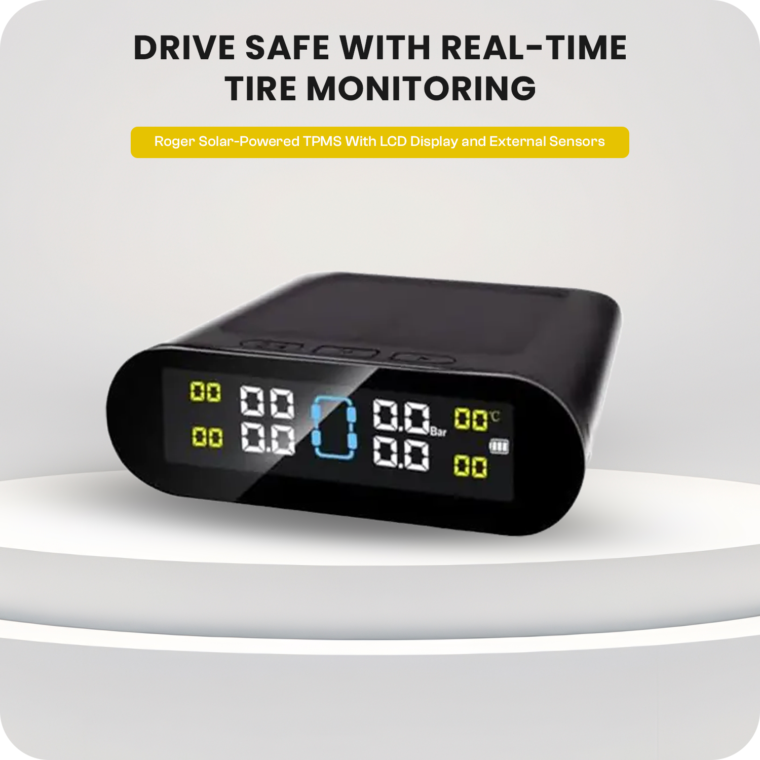 ROGER Solar-Powered Tire Pressure Monitoring System with LCD Display & External Sensors