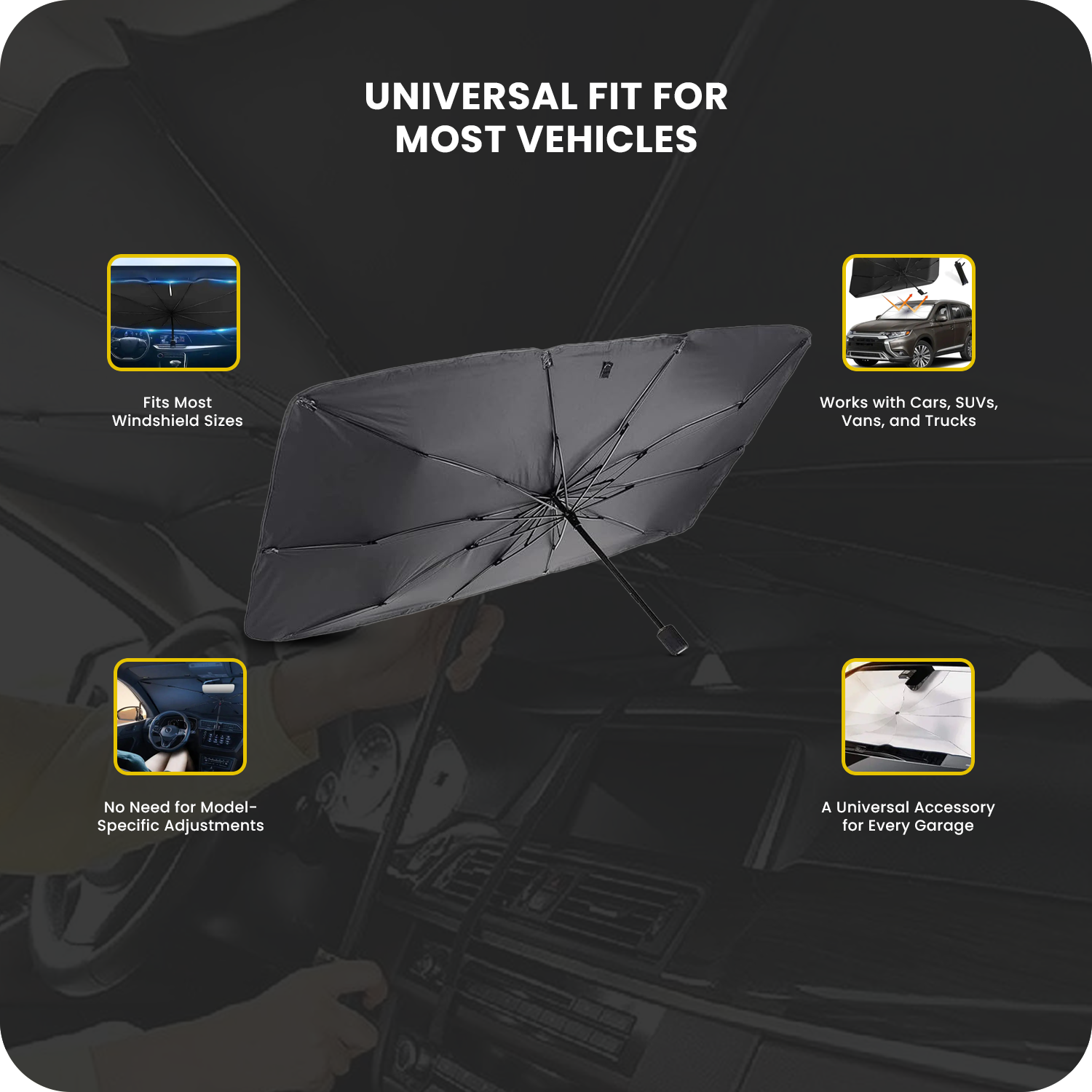 Compatible with a wide range of vehicles, including sedans, SUVs, minivans, trucks, and RVs, this sunshade is a versatile solution for front windshield protection.